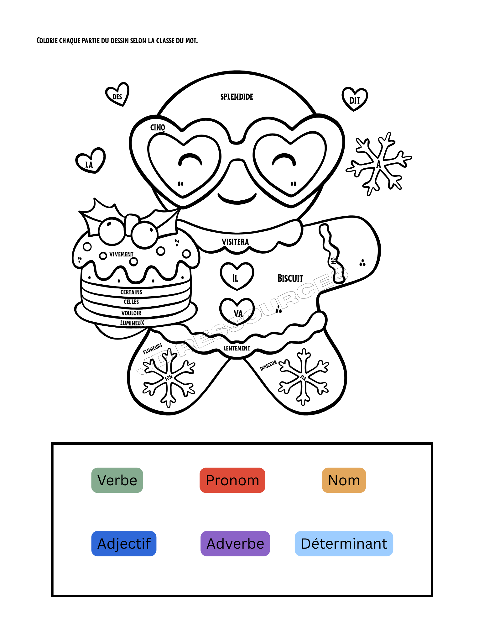 - 1 page de coloriage sur les classes de mots