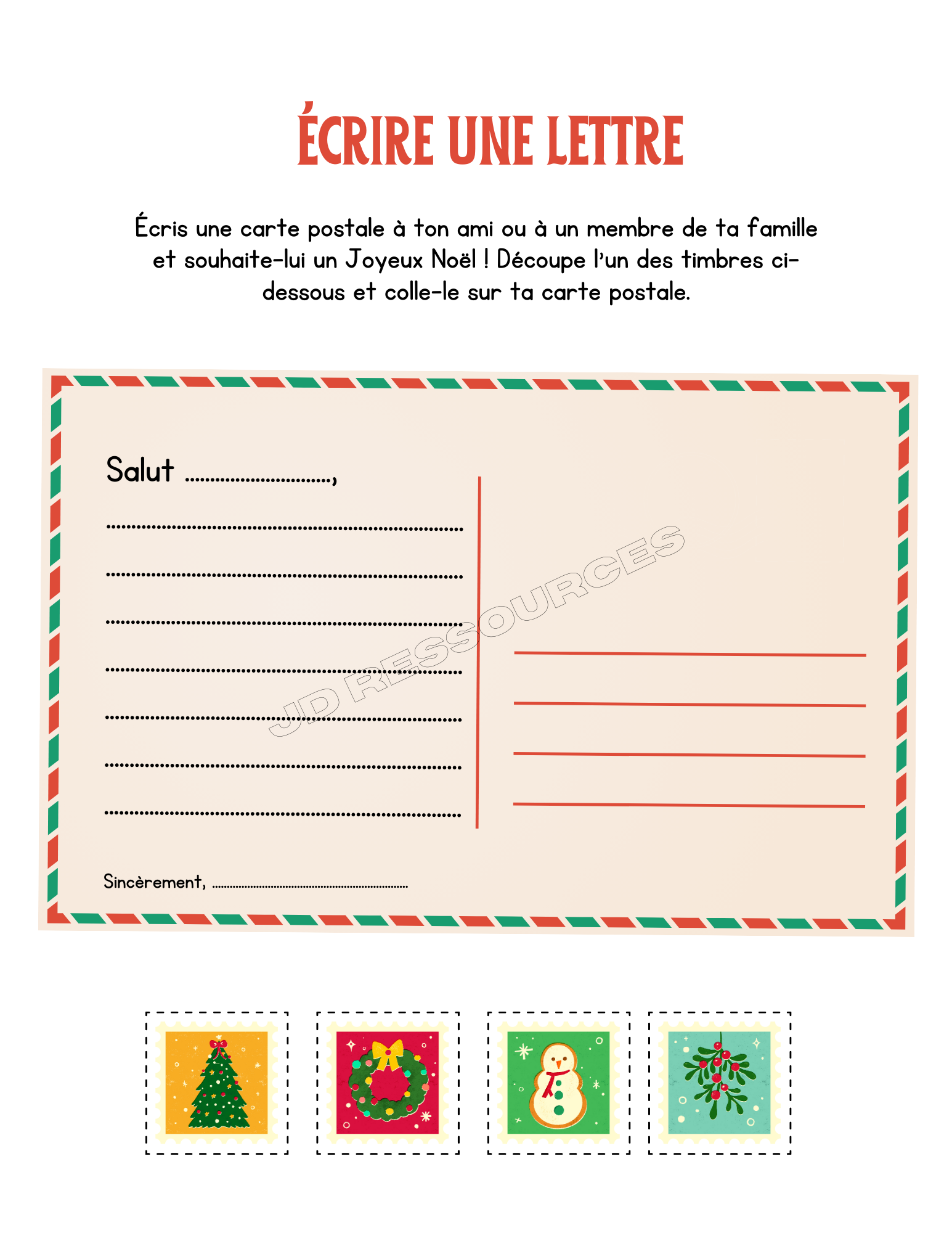 - 1 page pour écrire une lettre à un ami ou à un membre de la famille