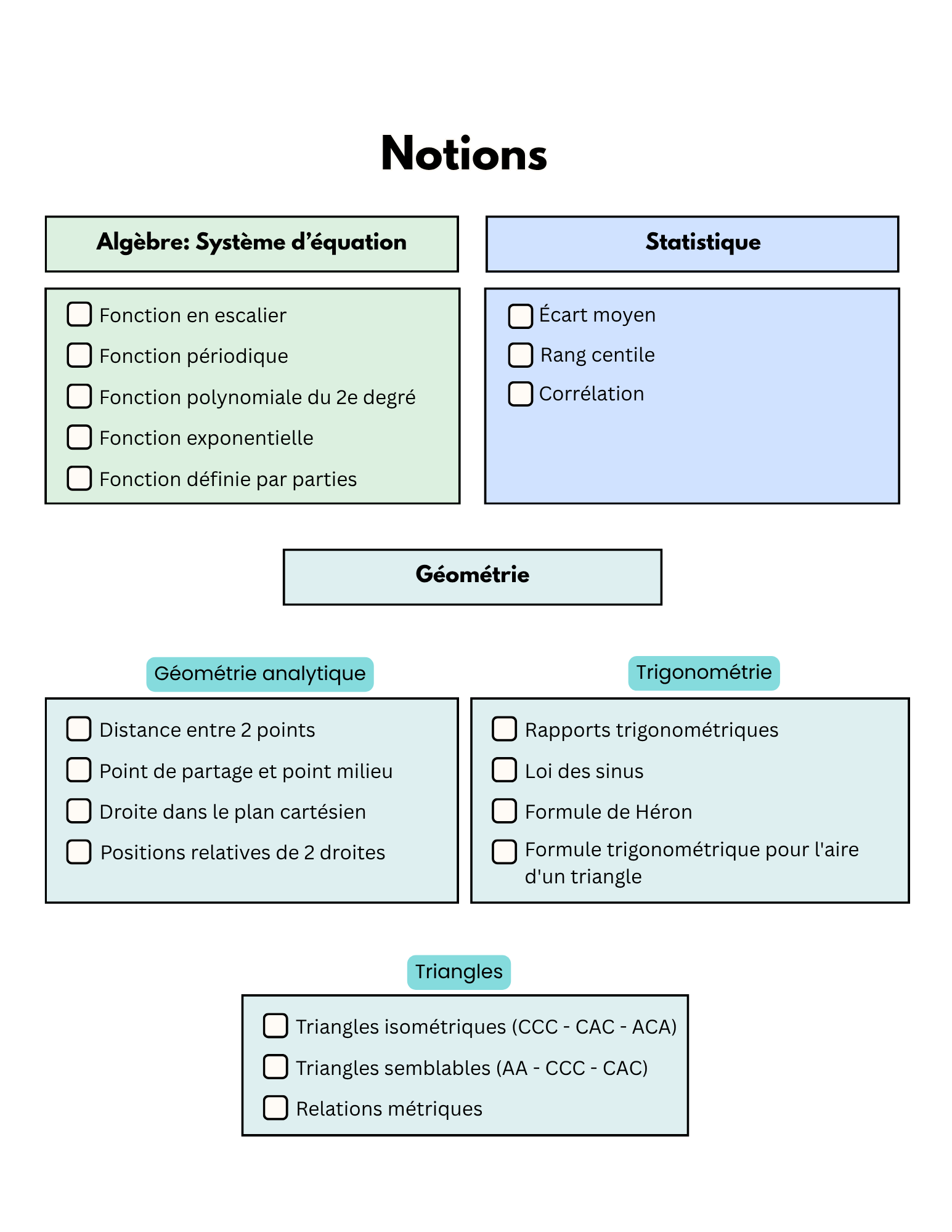 Couvre toutes les notions du cours de 4e secondaire (CST)