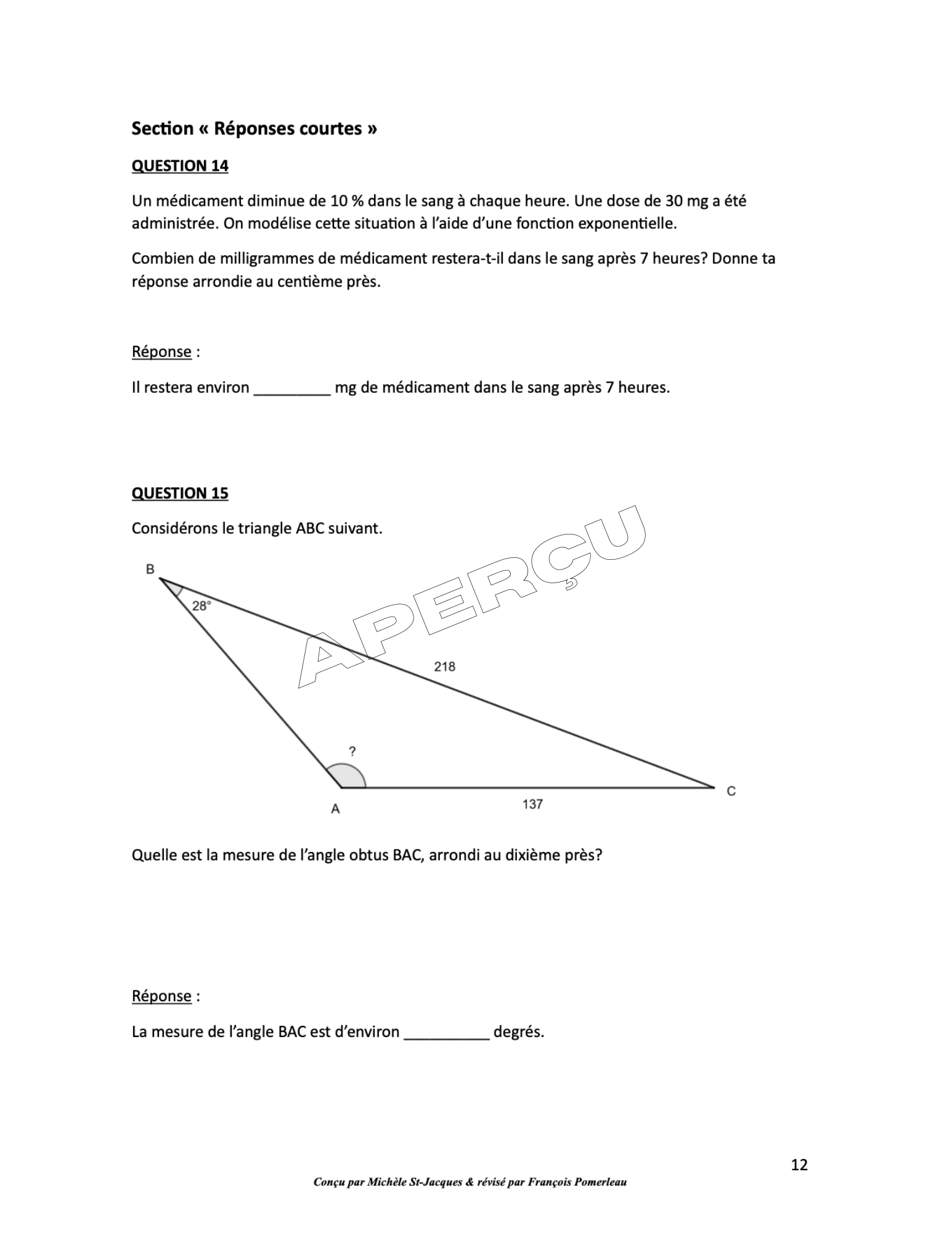 Il a été révisé en collaboration avec François Pomerleau, enseignant en mathématiques.