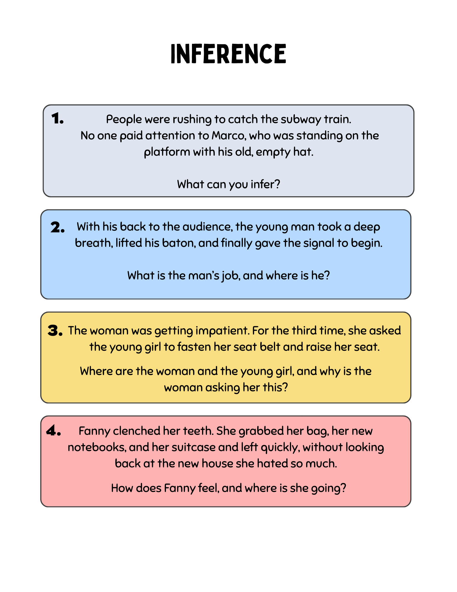 - Reading strategies activities: Author’s Purpose, Inference, Summarizing, Making Connections, Cause and Effect, and Prediction