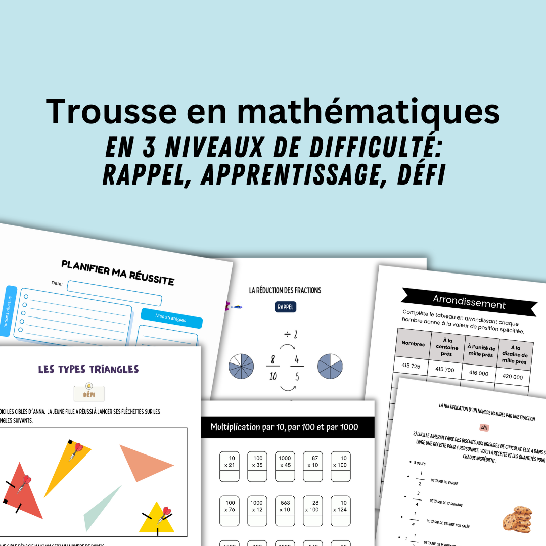 📚 Préparez l’examen du ministère en toute confiance! Cette trousse de mathématiques offre 3 niveaux de difficulté (rappel, apprentissage et défi) pour couvrir toutes les notions de 6e année. Avec des exercices progressifs et des mises en situation, elle est idéale pour réviser efficacement. ✅